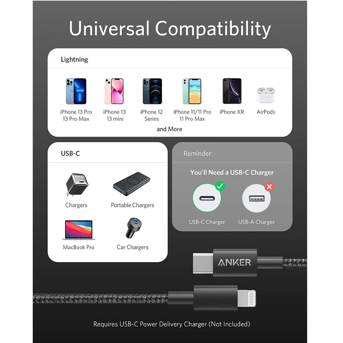 Anker New Nylon USB-C to Lightning Cable 1.8m – Black