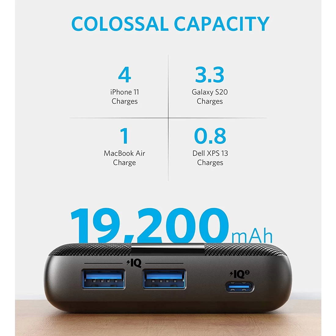 - 19200mAh Huge Capacity