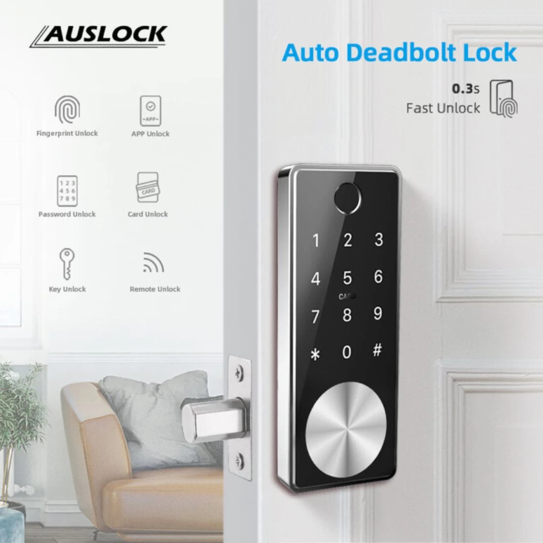Auslock Deadbolt Series D11B Smart Finger Print Door Lock – Silver/Black