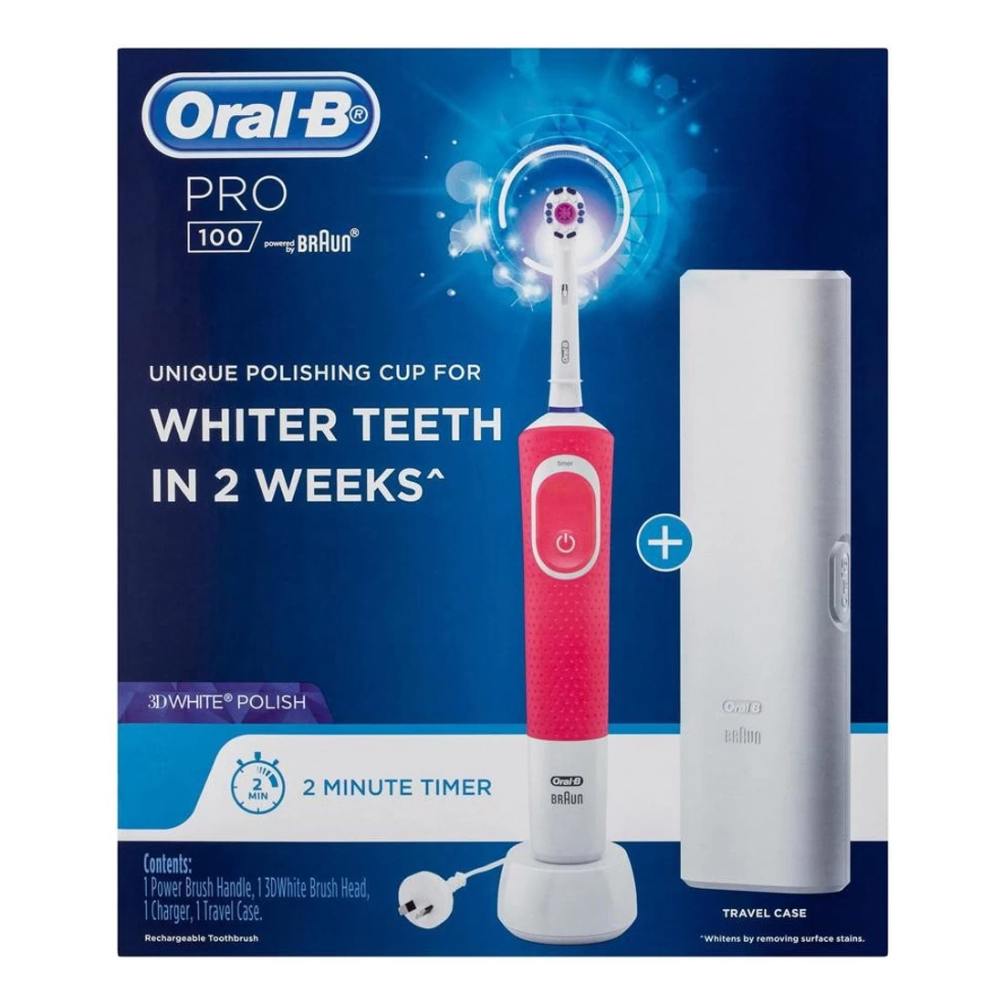 Oral-B Pro 100 3D White Polish Electric Toothbrush – Pink